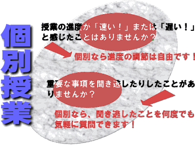 私達は長年の指導経験から、生徒1人1人に効果的な学習を行うのには個別指導が効果的である、と考えました。